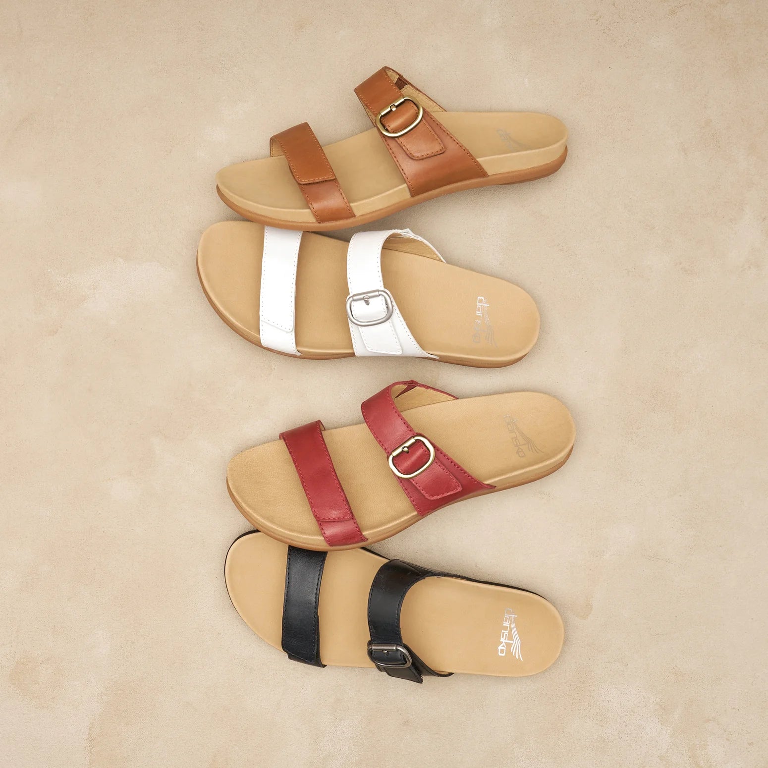 Step into support with Justine, a simple slide sandal made for both summer dresses and casual all-day wear.