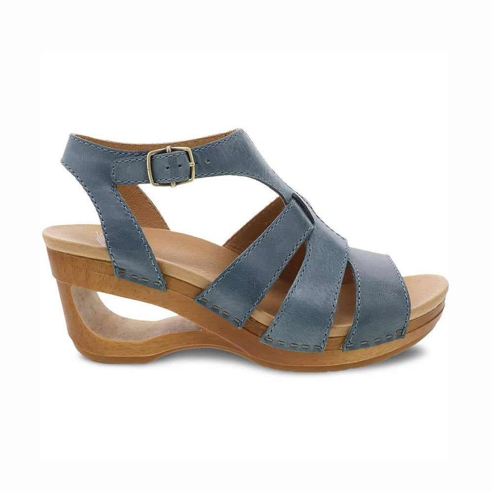 The Tamia is an open toe sling-back with an asymmetrical vamp, a wide instep strap, and an adjustable sling-back heel, all sitting on a lightweight TSR midsole, made lighter with a fashionable contoured cutout. This unique style also features leather uppers, an EVA footbed with memory foam, and our stapled construction.